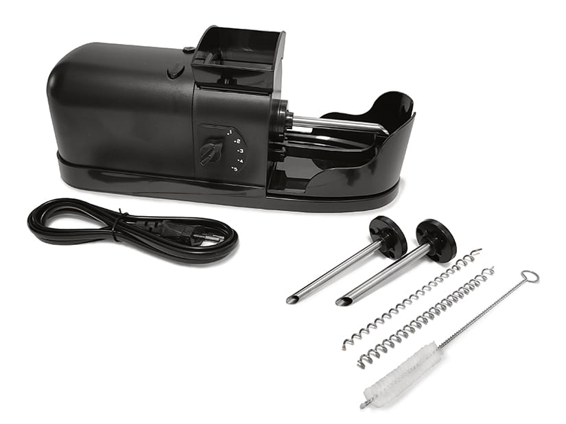 Elektryczna sprężynowa nabijarka 3w1 to urządzenie stworzone z myślą o wygodzie i precyzji. Dzięki wymiennym tulejkom i sprężynkom umożliwia napełnianie gilz o średnicach 8 mm, 6,5 mm oraz 5,5 mm, co czyni ją niezwykle uniwersalnym narzędziem do domowej produkcji papierosów.