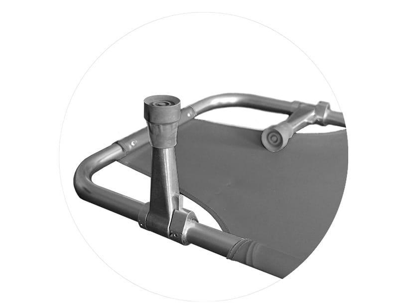 Nosze wyposażono w praktyczny, składany podnóżek, który zabezpiecza nogi pacjenta przed zsunięciem się – to szczególnie ważne podczas transportu na pochyłościach lub po schodach. Dwa regulowane pasy z mocnymi plastikowymi klamrami stabilizują ciało osoby transportowanej, minimalizując ryzyko przemieszczenia w czasie ruchu. Dodatkowo składane nóżki pozwalają ustawić nosze stabilnie na ziemi, co zwiększa komfort i bezpieczeństwo podczas postoju – np. w kaplicy, przy karetkach lub w czasie oczekiwania na załadunek.