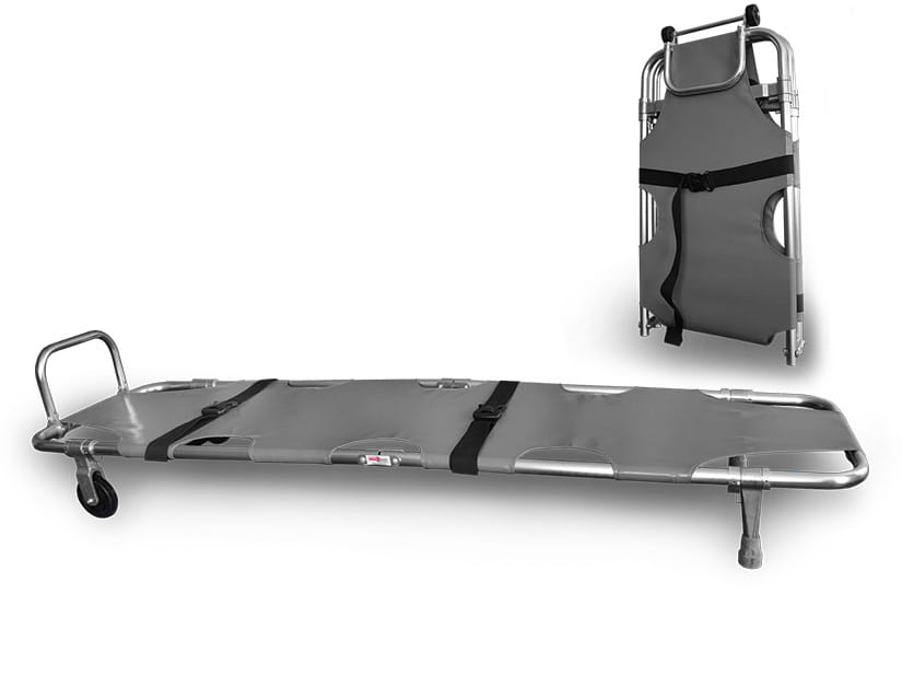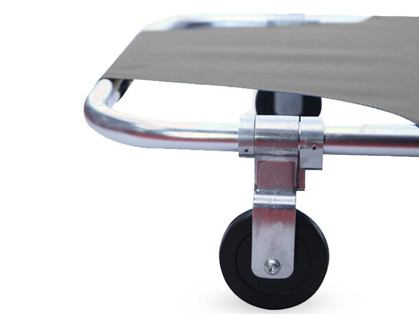 Konstrukcja noszy umożliwia ich szybkie złożenie na pół, co znacząco ułatwia przechowywanie i transport – zarówno w karetkach, pojazdach OSP, jak i w pomieszczeniach technicznych. Składane kółka pozwalają na sprawne manewrowanie po płaskich powierzchniach, nawet przez jedną osobę. To ogromna zaleta podczas ewakuacji w budynkach, halach czy na placach eventowych. Aluminiowa rama jest odporna na korozję, a jej lekkość pozwala na łatwe podnoszenie i przenoszenie noszy, co jest istotne zwłaszcza w działaniach prowadzonych przez jedną lub dwie osoby.