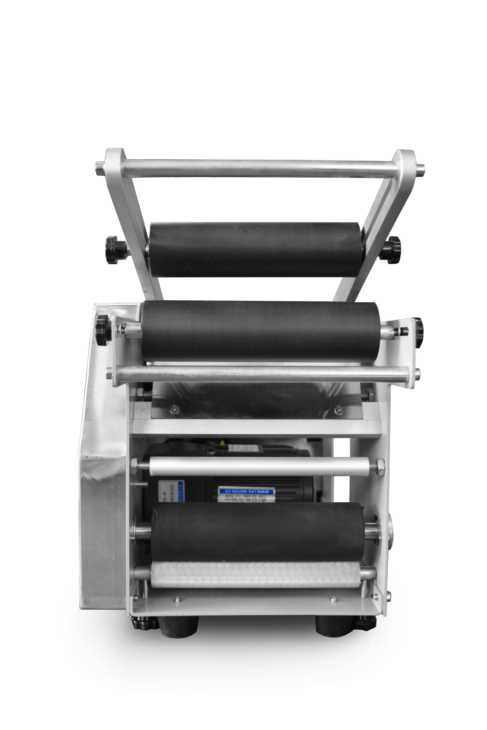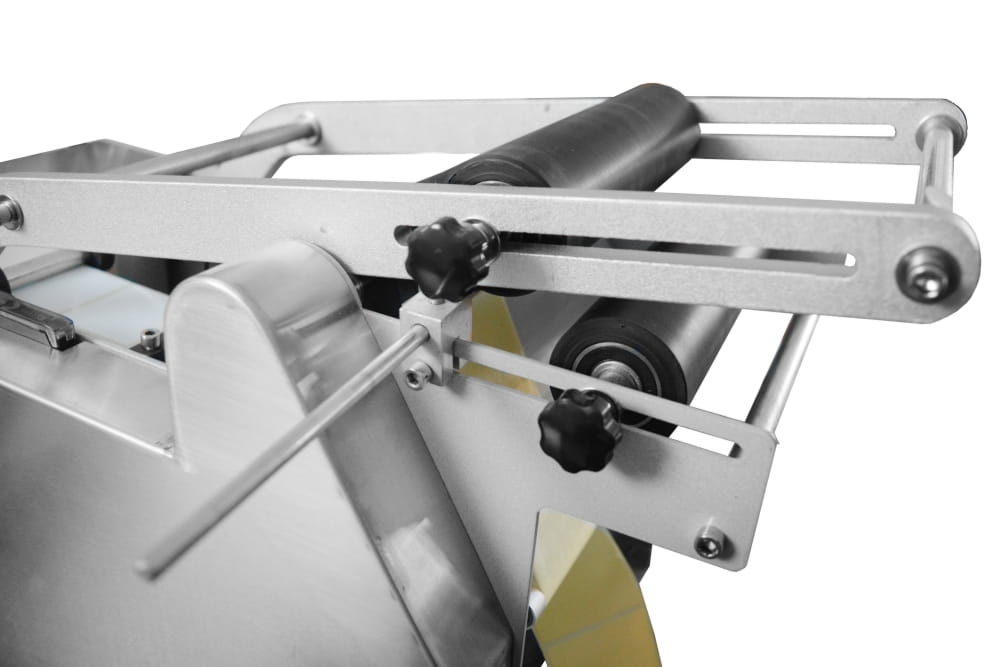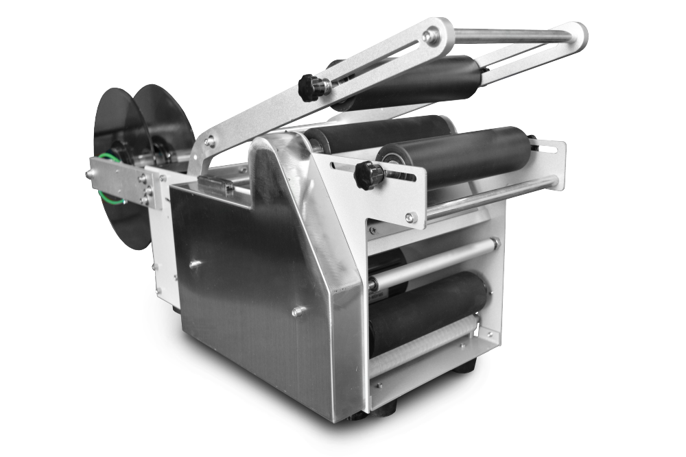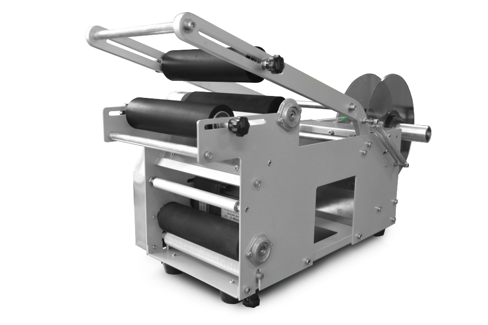 Urządzenie służy do naklejania etykiet, na opakowania o kształcie cylindrycznym np. butelki szklane, słoiki, butelki PET, HDPE, puszki itp. Samoprzylepne etykiety umieszczane są z precyzją ± 0,5 mm.