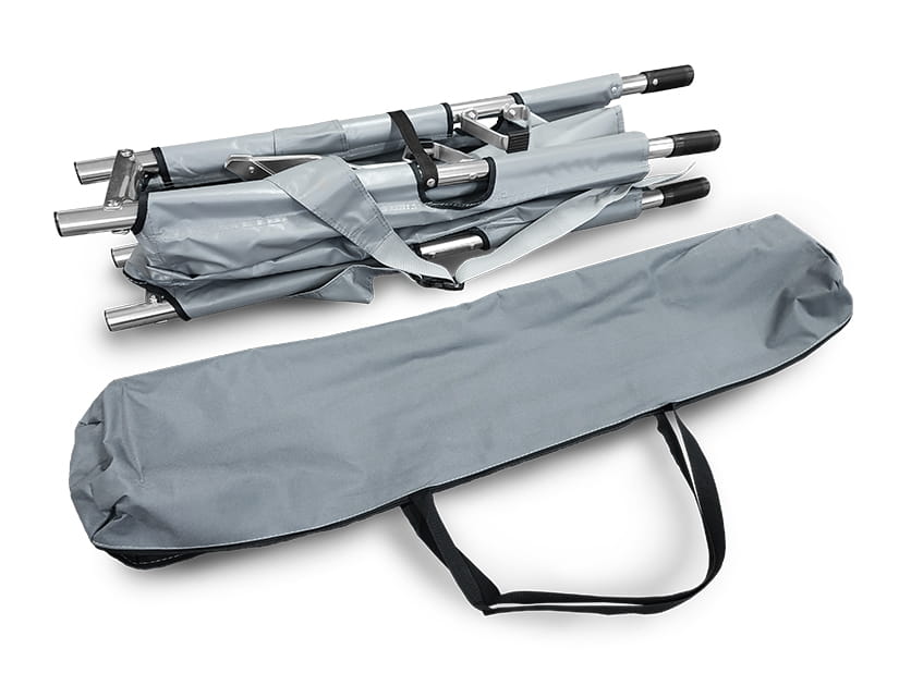 Nosze transportowe składane z torbą to lekkie i kompaktowe rozwiązanie do szybkiej ewakuacji i transportu poszkodowanych. Składają się wzdłuż oraz na pół, dzięki czemu po złożeniu zajmują bardzo mało miejsca i łatwo mieszczą się w karetce lub samochodzie ratowniczym.