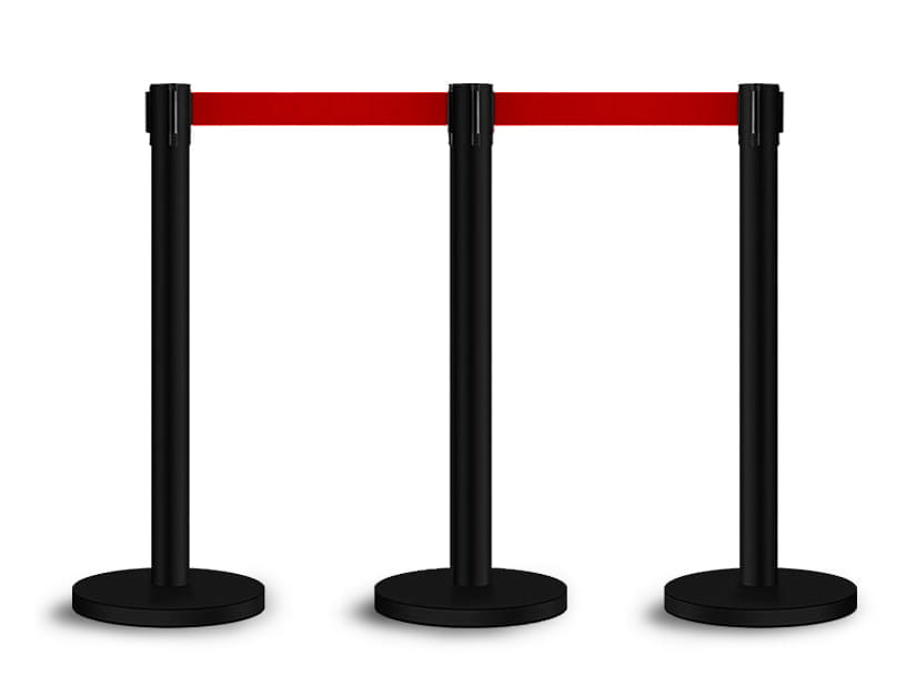Dzięki zwijanej taśmie i stabilnej konstrukcji możesz łatwo kierować ruchem ludzi w dowolnym miejscu.
