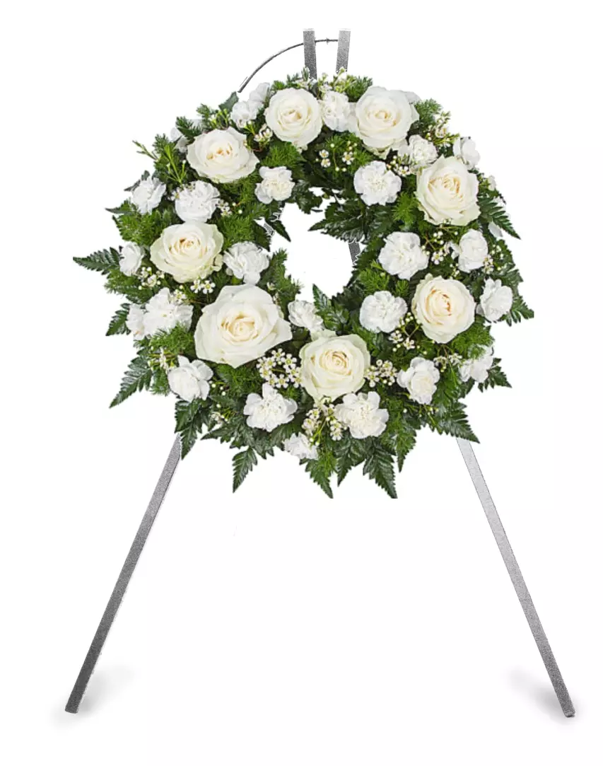 Stojak na wieniec pogrzebowy wykonany jest z wysokiej jakości stali pomalowanej proszkowo. Stalowa konstrukcja zapewnia stabilność. Produkt wyprodukowany w Polsce.